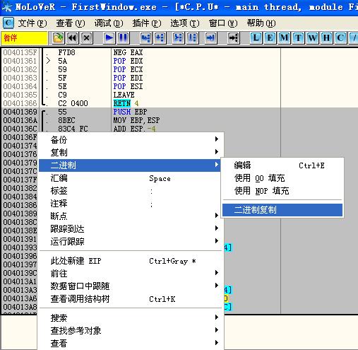 打开 OD ,选中自己想转换为vb代码的函数或代码段,然后点鼠标右键菜单 > 二进制 > 二进制复制