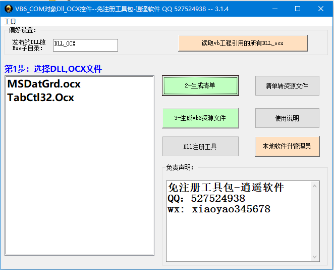 VB6 让你的exe中用到Dll、OCX免注册,用这个免费软件 self-reg-dll-ocx